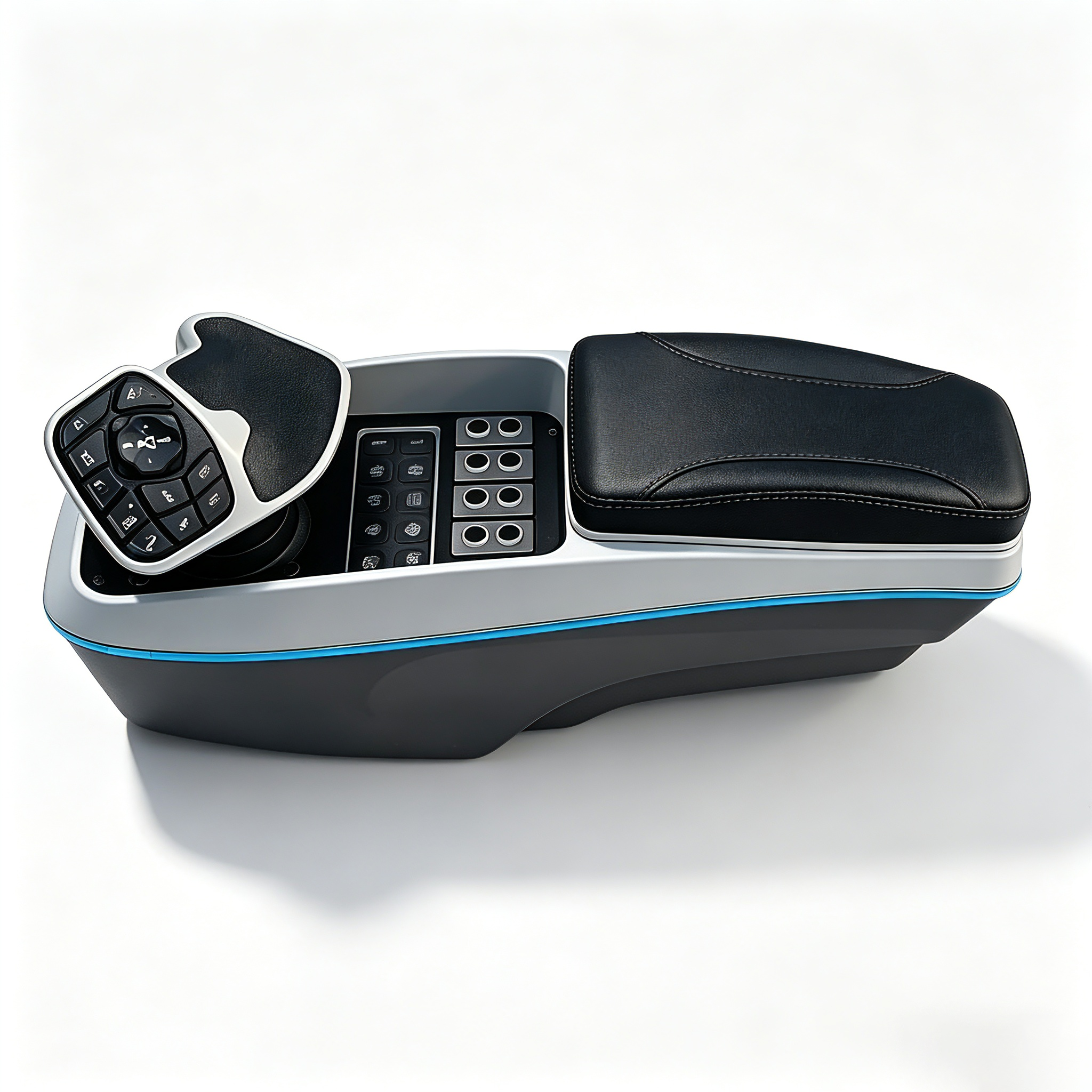 • 产品特点:模块化扶手箱,有多种布局可以定制;内带2 个 TYPE-A 手机充电接口 带绿色背光按键